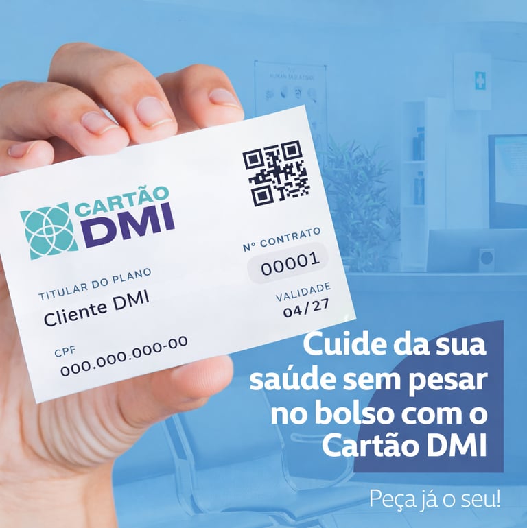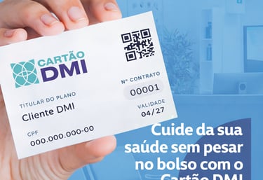 O CARTÃO DMI foi criado para facilitar o seu acesso à saúde, oferecendo consultas, exames e atendimento com qualidade por valores acessíveis. Com uma rede integrada e atendimento ágil, você cuida da sua saúde com mais praticidade, economia e segurança, sempre que precisar.