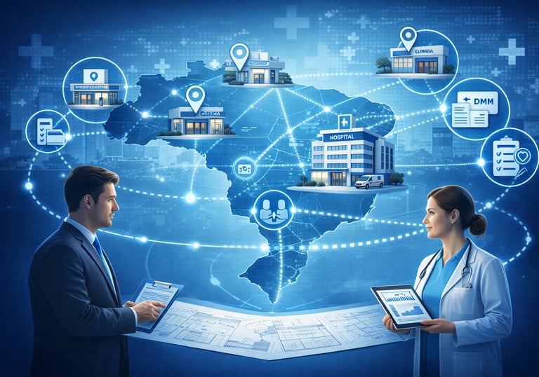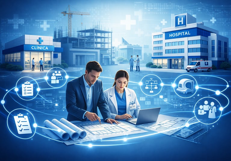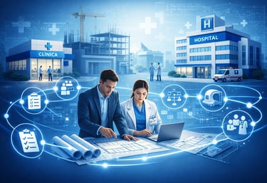 Planejamento, implantação e organização de clínicas, hospitais e operações de saúde.