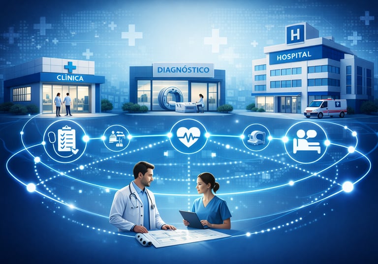 Conexão entre clínicas, diagnósticos e hospitais